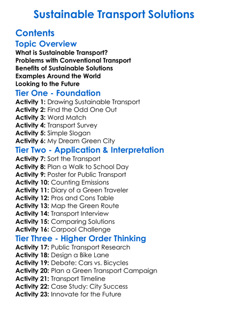 Sustainable Transport Solutions Worksheet Activity Booklet