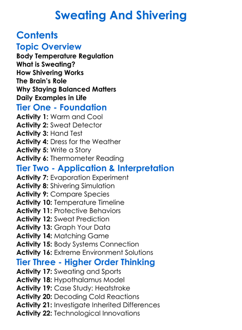 Sweating And Shivering Worksheet Activity Booklet