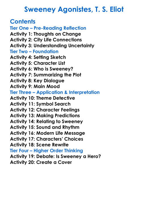 Sweeney Agonistes T S Eliot Worksheet Activity Booklet