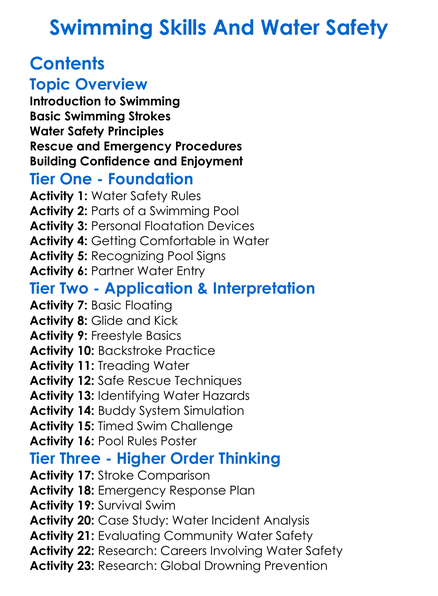 Swimming Skills And Water Safety Worksheet Activity Booklet