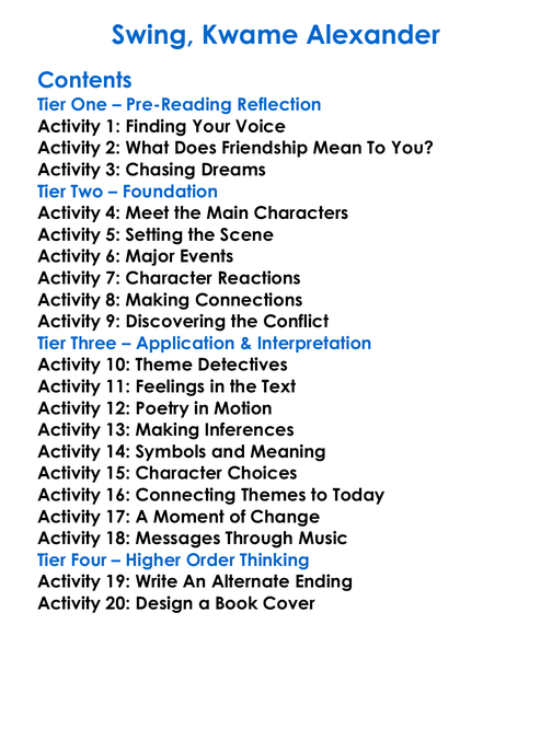 Swing Kwame Alexander Worksheet Activity Booklet