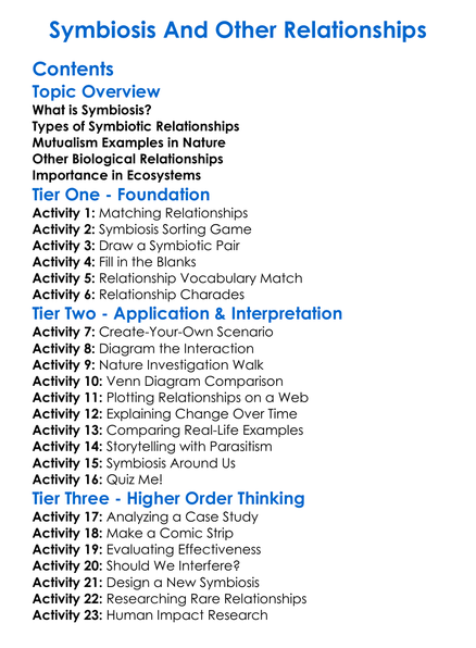 Symbiosis And Other Relationships Worksheet Activity Booklet