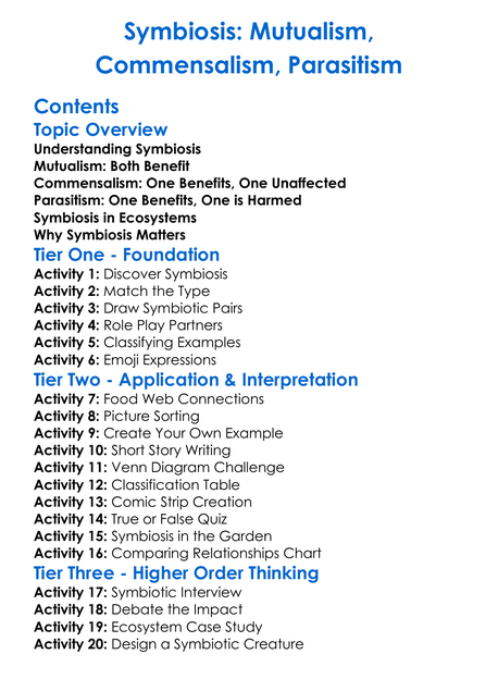 Symbiosis Mutualism Commensalism Parasitism Worksheet Activity Booklet