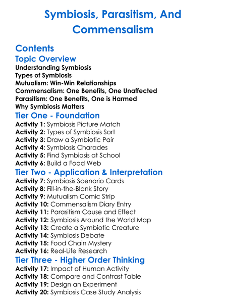 Symbiosis Parasitism And Commensalism Worksheet Activity Booklet