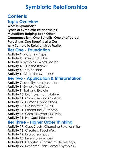 Symbiotic Relationships Worksheet Activity Booklet