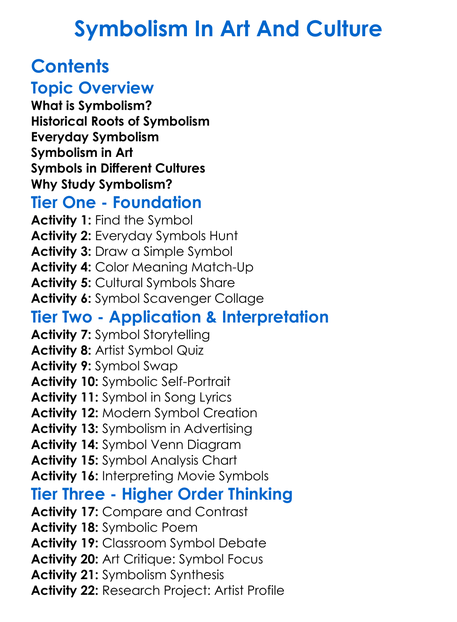Symbolism In Art And Culture Worksheet Activity Booklet