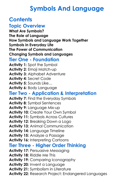 Symbols And Language Worksheet Activity Booklet