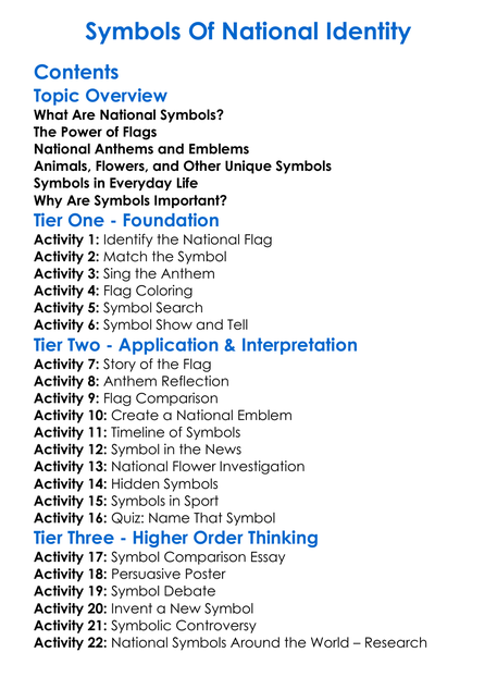Symbols Of National Identity Worksheet Activity Booklet