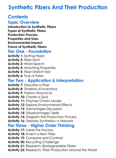 Synthetic Fibers And Their Production Worksheet Activity Booklet