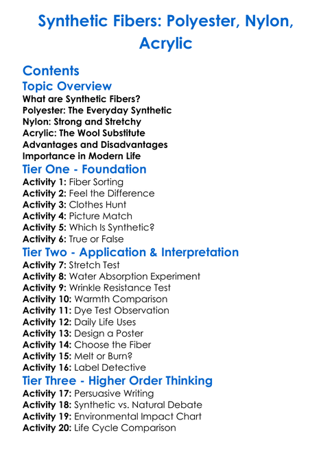 Synthetic Fibers Polyester Nylon Acrylic Worksheet Activity Booklet