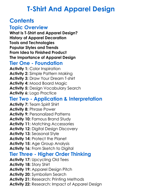 T-Shirt And Apparel Design Worksheet Activity Booklet