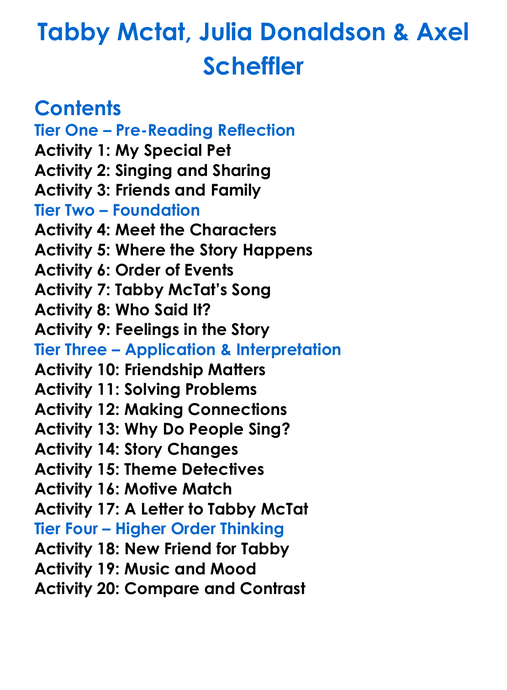 Tabby Mctat Julia Donaldson Axel Scheffler Worksheet Activity Booklet