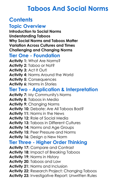 Taboos And Social Norms Worksheet Activity Booklet