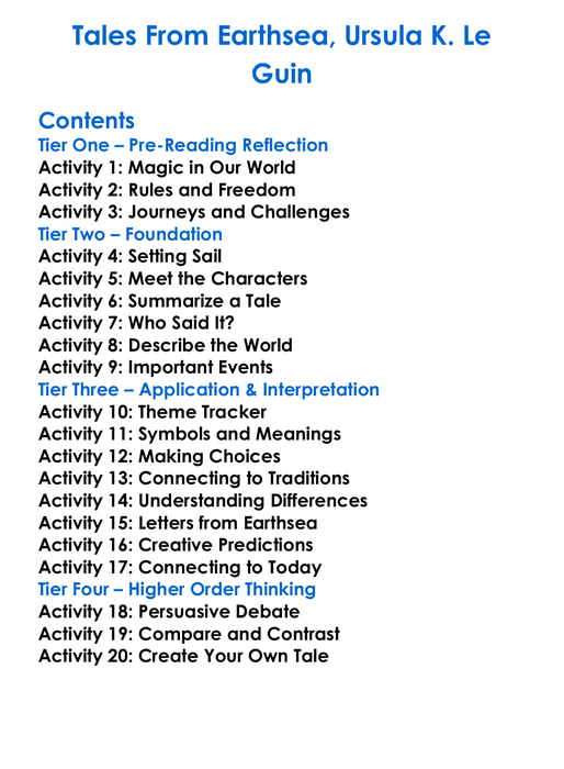 Tales From Earthsea Ursula K Le Guin Worksheet Activity Booklet