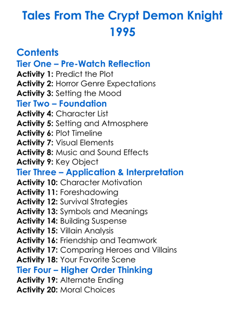 Tales From The Crypt Demon Knight 1995 Worksheet Activity Booklet