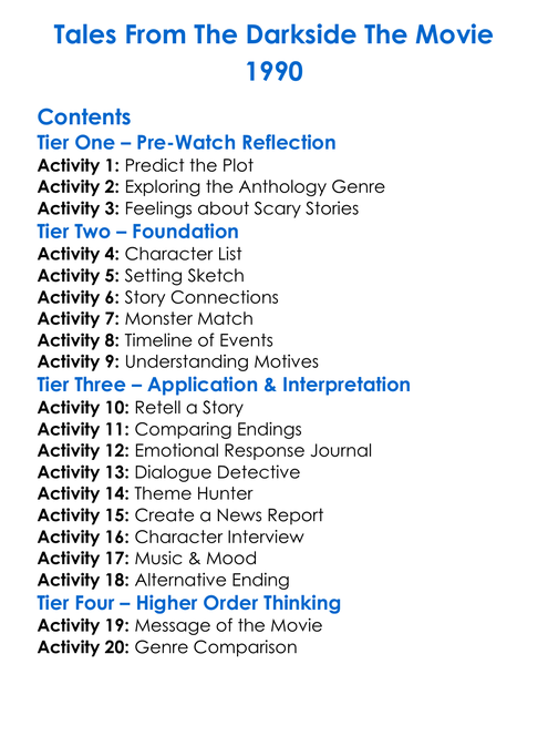 Tales From The Darkside The Movie 1990 Worksheet Activity Booklet