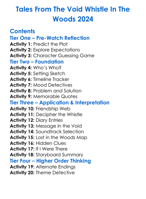 Tales From The Void Whistle In The Woods 2024 Worksheet Activity Booklet