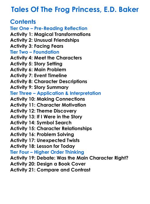 Tales Of The Frog Princess Ed Baker Worksheet Activity Booklet