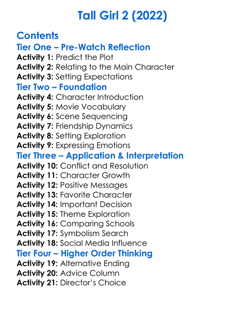 Tall Girl 2 2022 Worksheet Activity Booklet