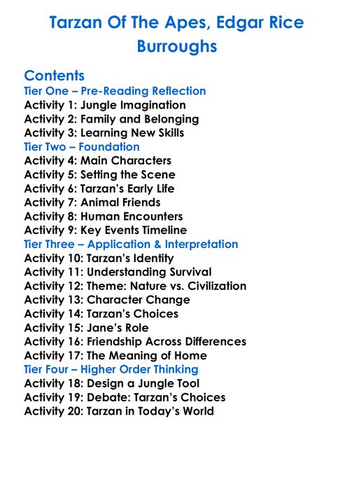 Tarzan Of The Apes Edgar Rice Burroughs Worksheet Activity Booklet