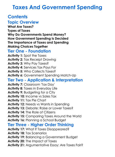 Taxes And Government Spending Worksheet Activity Booklet