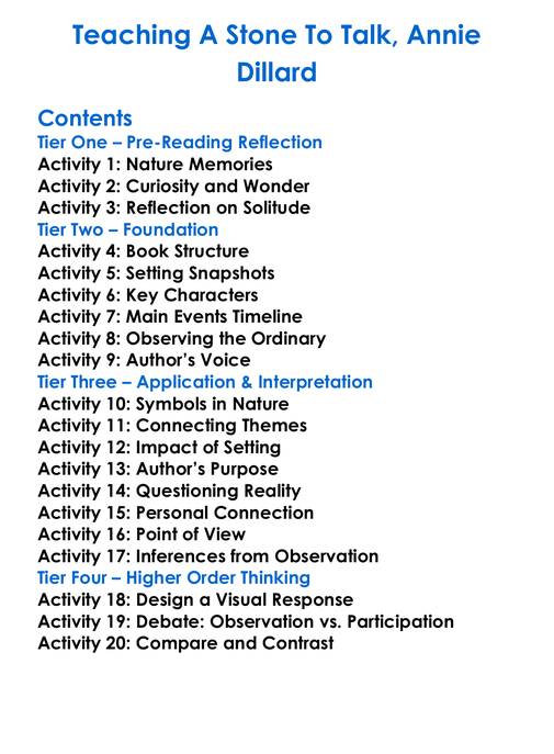 Teaching A Stone To Talk Annie Dillard Worksheet Activity Booklet