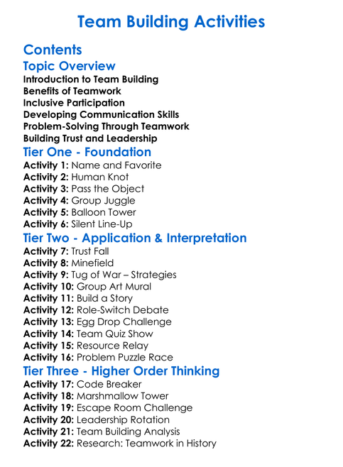 Team Building Activities Worksheet Activity Booklet