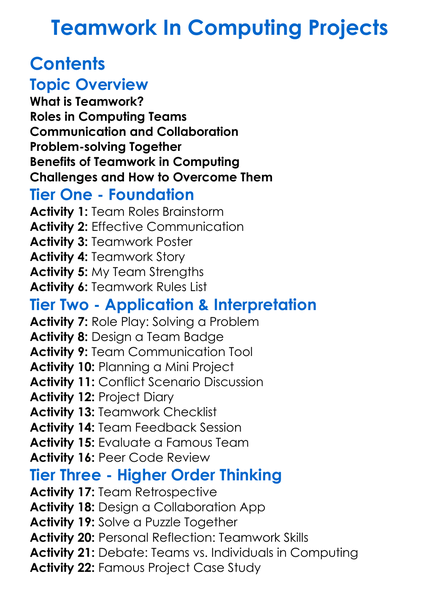 Teamwork In Computing Projects Worksheet Activity Booklet