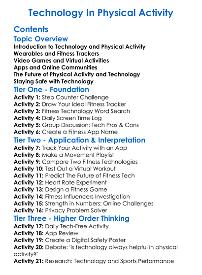 Technology In Physical Activity Worksheet Activity Booklet