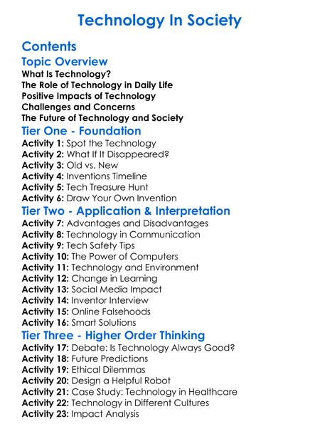Technology In Society Worksheet Activity Booklet
