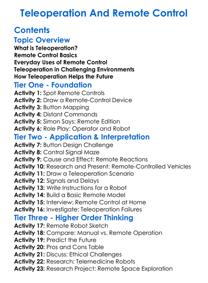 Teleoperation And Remote Control Worksheet Activity Booklet