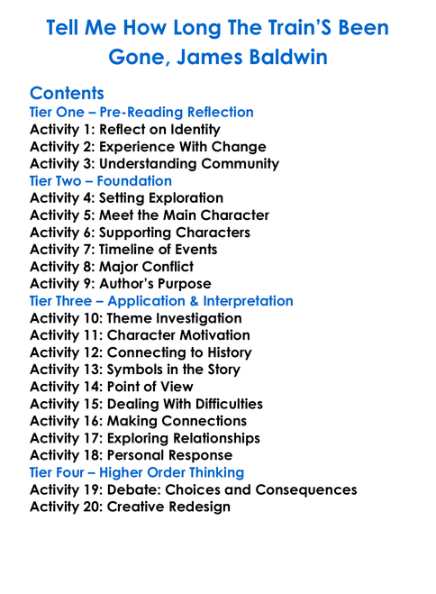 Tell Me How Long The Trains Been Gone James Baldwin Worksheet Activity Booklet