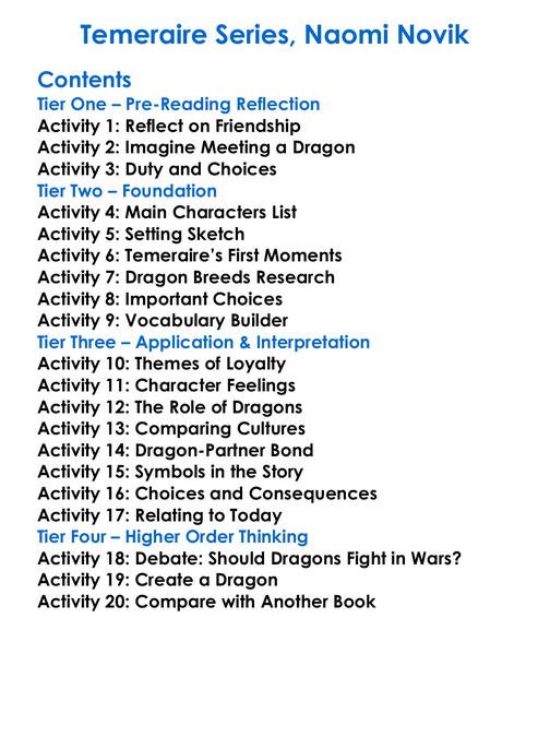 Temeraire Series Naomi Novik Worksheet Activity Booklet