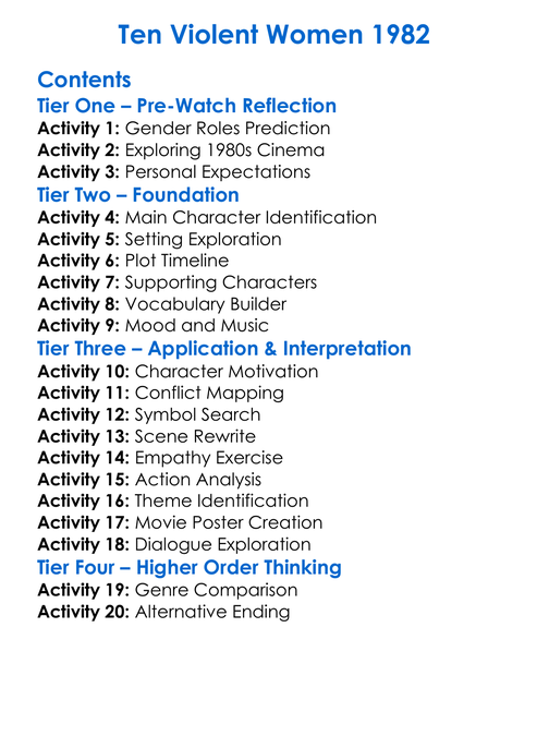 Ten Violent Women 1982 Worksheet Activity Booklet