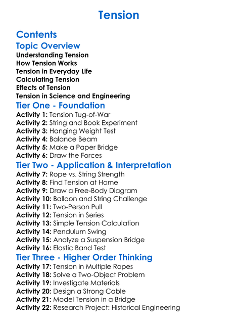 Tension Worksheet Activity Booklet