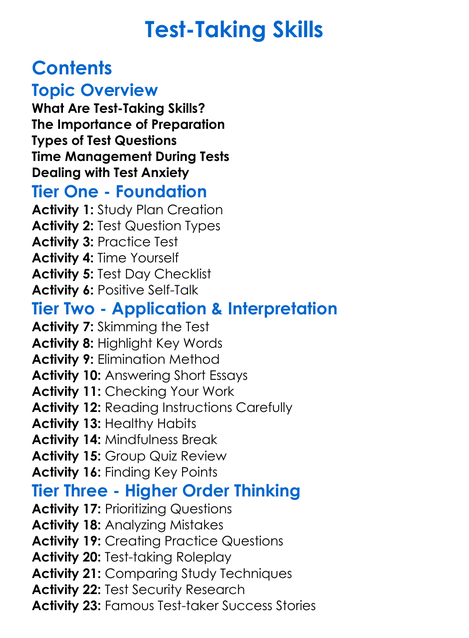 Test-Taking Skills Worksheet Activity Booklet
