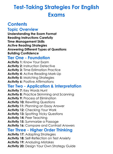 Test-Taking Strategies For English Exams Worksheet Activity Booklet