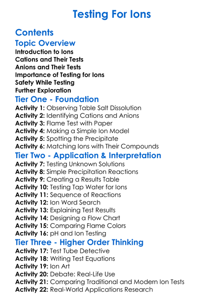 Testing For Ions Worksheet Activity Booklet