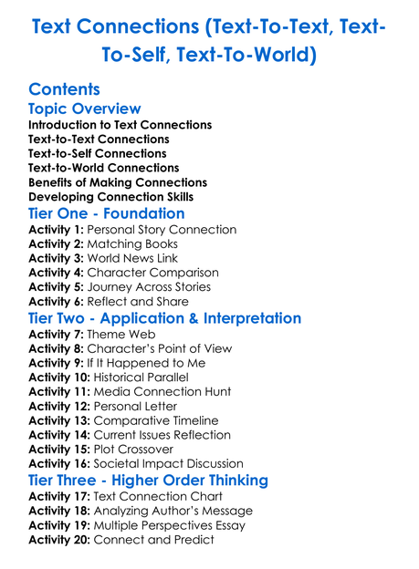Text Connections Text-To-Text Text-To-Self Text-To-World Worksheet Activity Booklet