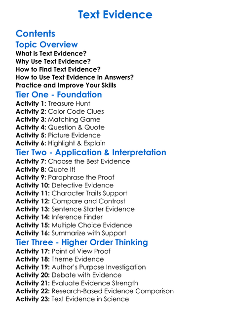 Text Evidence Worksheet Activity Booklet