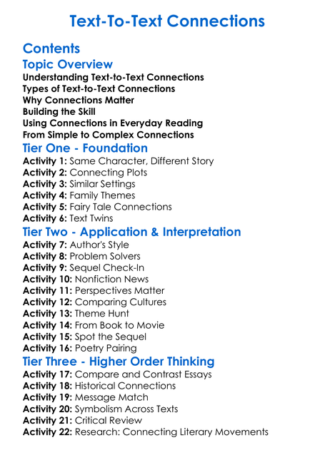 Text-To-Text Connections Worksheet Activity Booklet