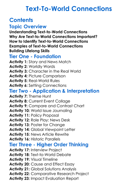 Text-To-World Connections Worksheet Activity Booklet