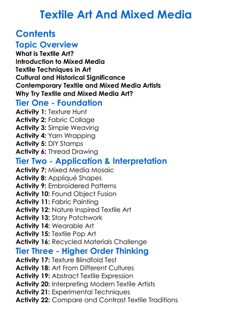 Textile Art And Mixed Media Worksheet Activity Booklet