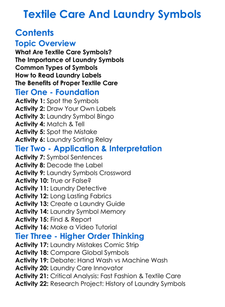 Textile Care And Laundry Symbols Worksheet Activity Booklet