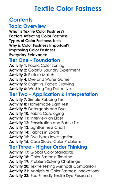 Textile Color Fastness Worksheet Activity Booklet
