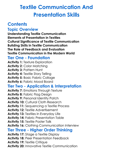 Textile Communication And Presentation Skills Worksheet Activity Booklet