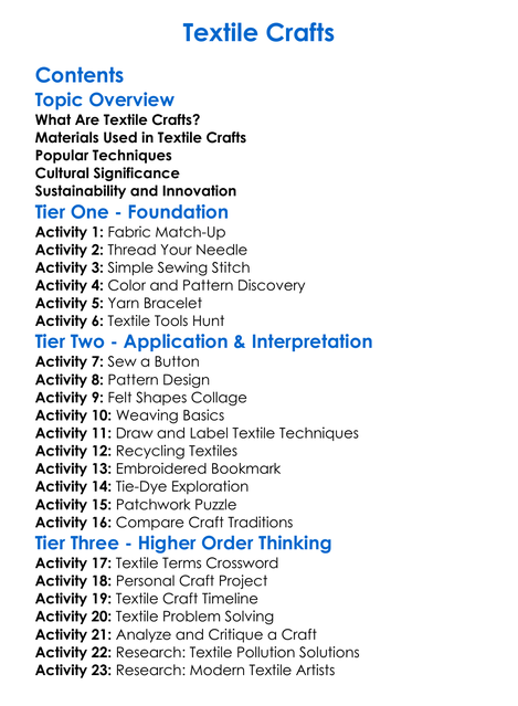 Textile Crafts Worksheet Activity Booklet