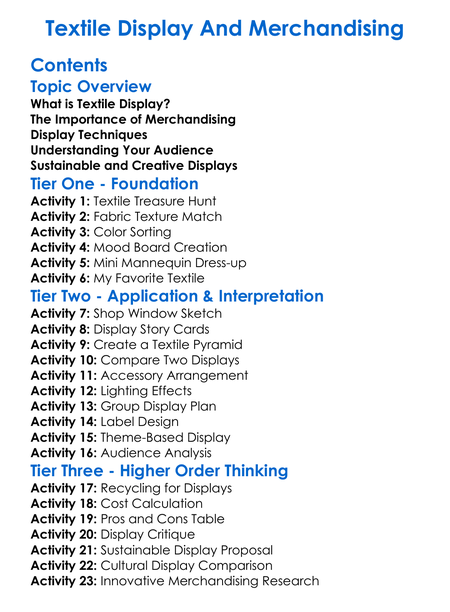 Textile Display And Merchandising Worksheet Activity Booklet