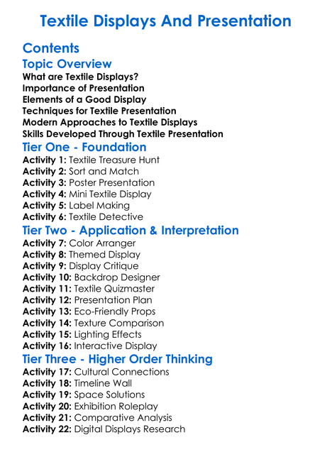 Textile Displays And Presentation Worksheet Activity Booklet