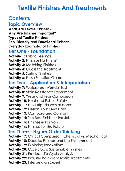 Textile Finishes And Treatments Worksheet Activity Booklet